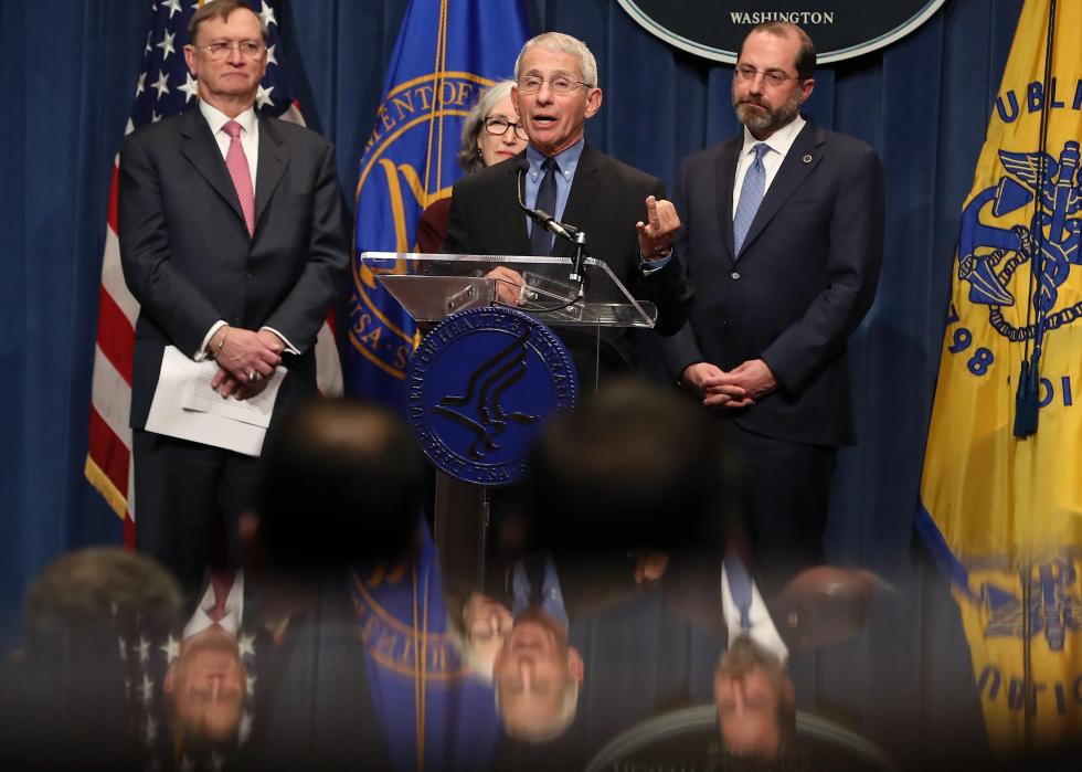 [Pictured: National Constitute of Allergy and Infectious Diseases Managing director Anthony Fauci speaks about the coronavirus while flanked past (L-R) Assistant Secretary for Preparedness and Response Robert Kadlec, CDC Principal Deputy Director Anne Schuchat, and HHS Secretary Alex Azar.]